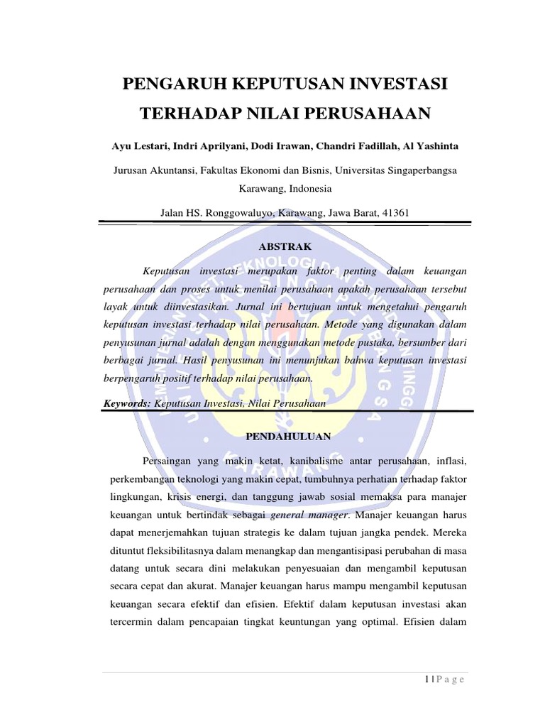 (PDF) PENGARUH KEPUTUSAN INVESTASI, KEPUTUSAN PENDANAAN
