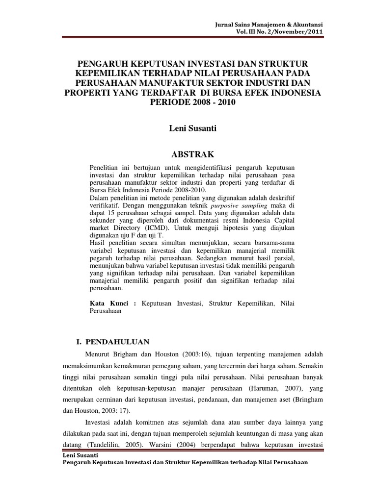 (PDF) Pengaruh Keputusan Investasi, Keputusan Pendanaan