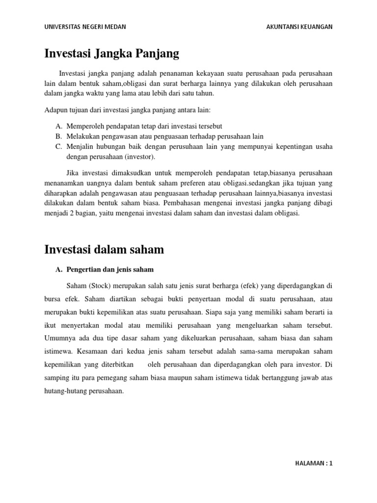 Namun, bilakeuntungan perusahaan banyak, ditambah pula denganpinjaman, tentu investasi juga akan banyak. Investasi bertujuan untuk mengurangi persaingan antara perusahaan yang sejenis. Makalah investasi bonds untuk memenuhi tugas mata kuliah akuntansi keuangan menengah ii dosen pengampu: