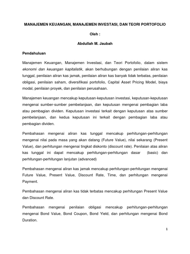 Manajemen Keuangan, Manajemen Investasi, Dan Teori