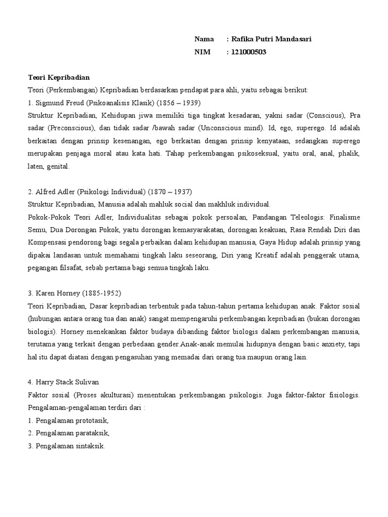 Teori Kepribadian Menurut Para Ahli