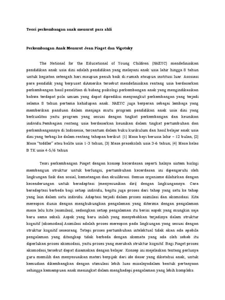 Teori Perkembangan Anak Menurut Para Ahli