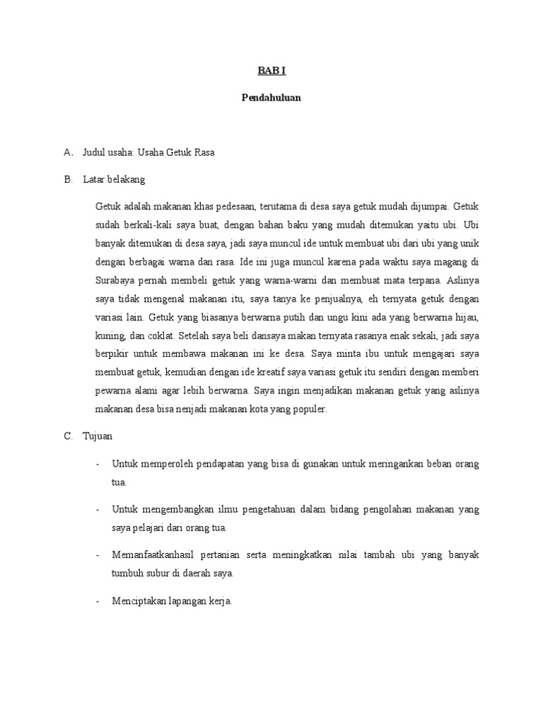 Contoh Proposal Usaha Getuk Rasa